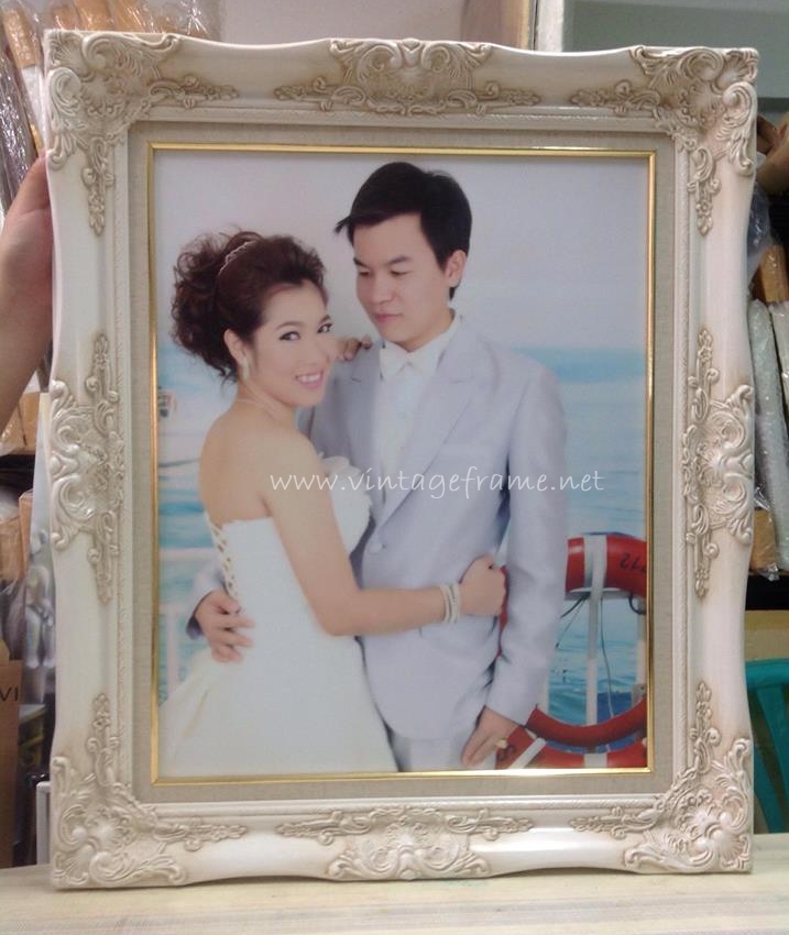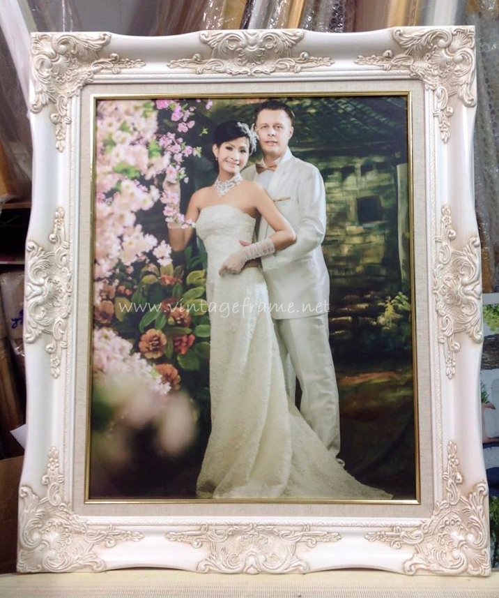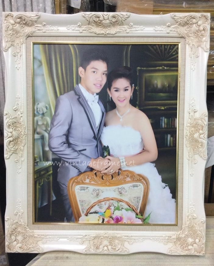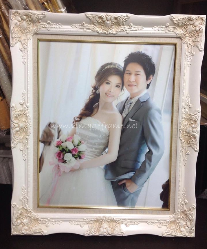 กรอบหลุยส์ไม้แท้ ลายเก่า สีขาวล้วน ขนาด 16x20 นิ้ว แนวตั้ง